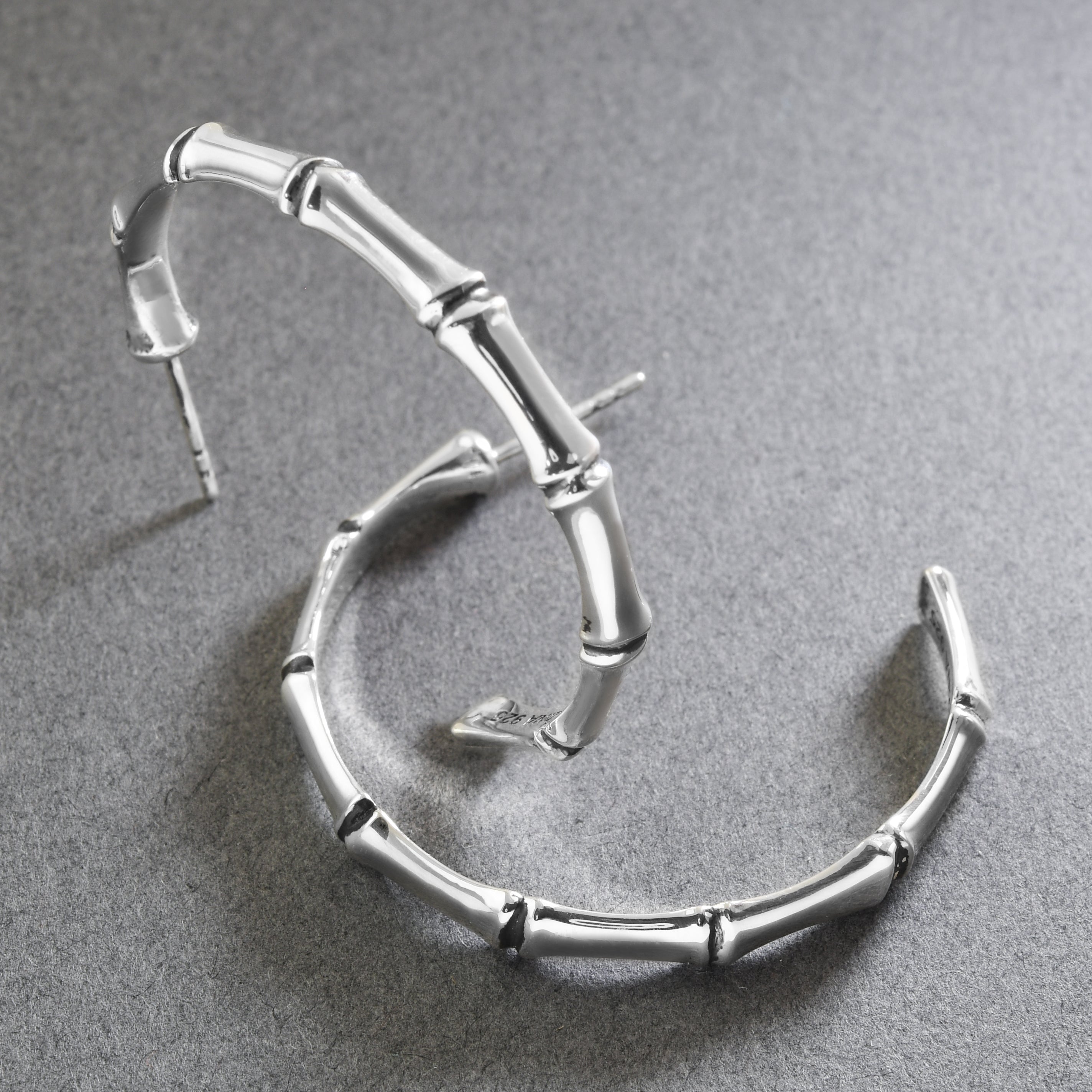 A nature-inspired jewelry classic! Bamboo branch hoops - crafted in polished sterling silver with oxidized details. The hoops have posts with friction backs and measure 1.5 inches in diameter. Wear...