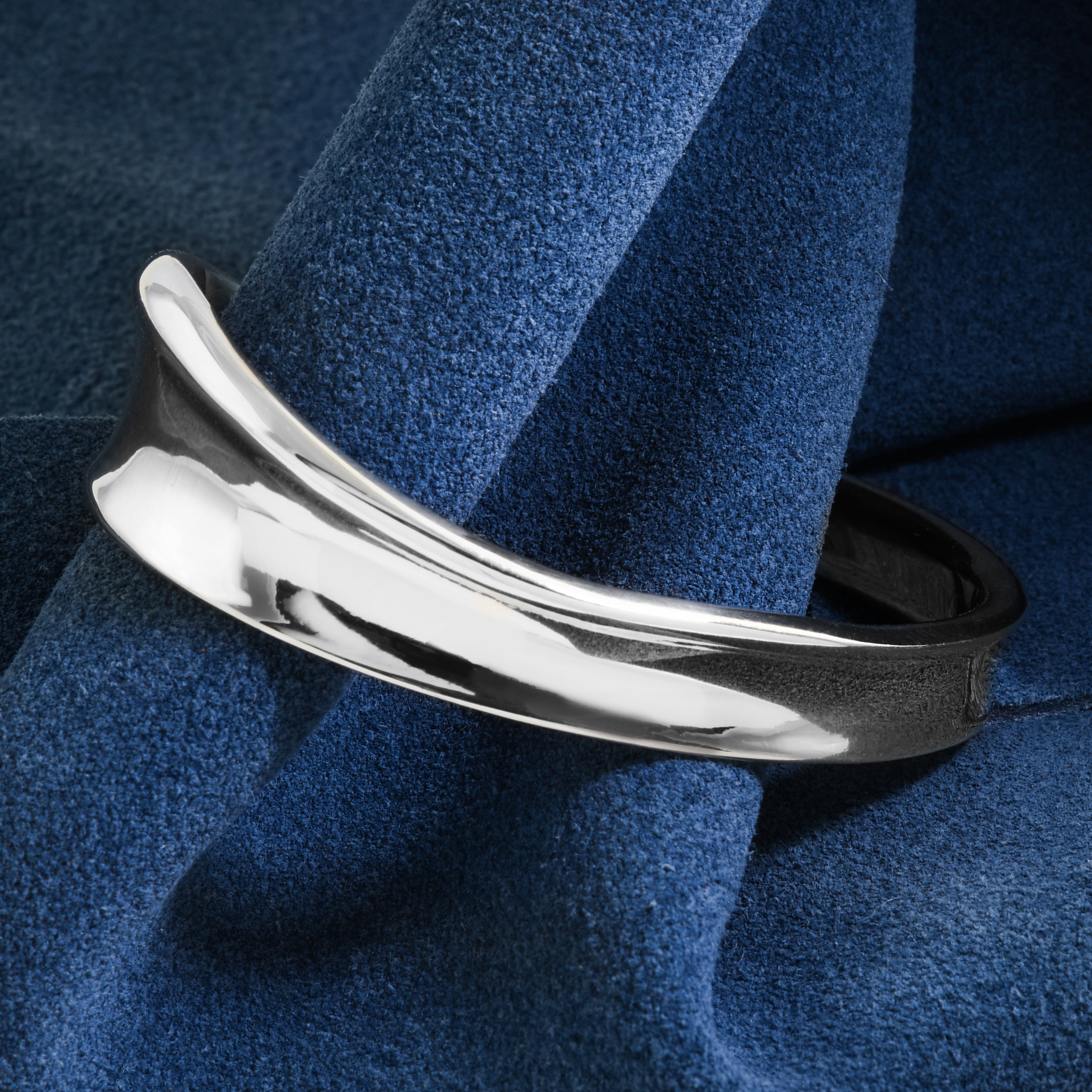 Shiny silver will flow around your wrist when you wear this contemporary cuff bracelet. The bracelet is solid sterling silver with a substantial weight and gleaming high polish finish. The...