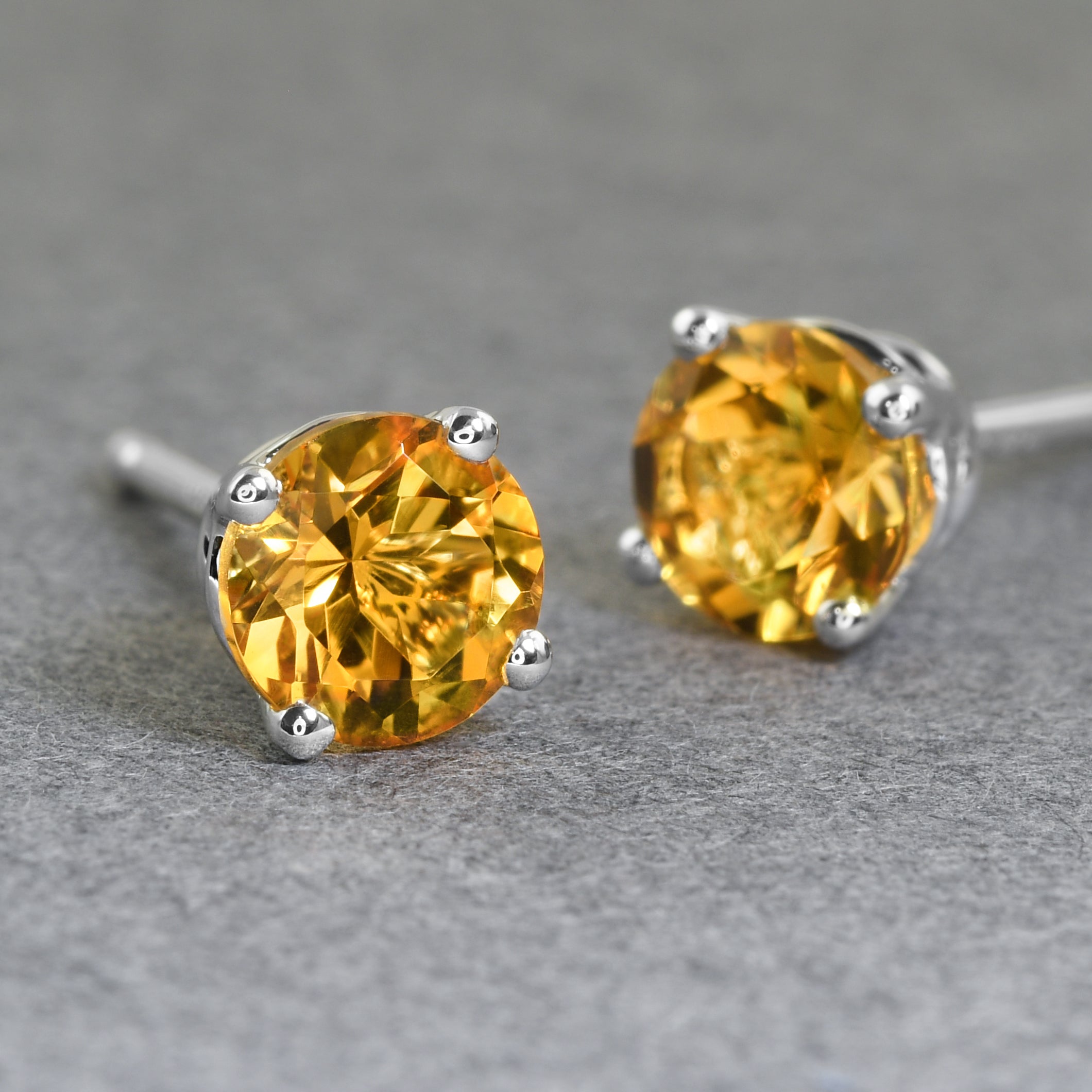 Simple, classic stud earrings made special by a pair of juicy gems! The earrings are 14 karat white gold and have been set with a pair of bright yellow-orange citrines. ...