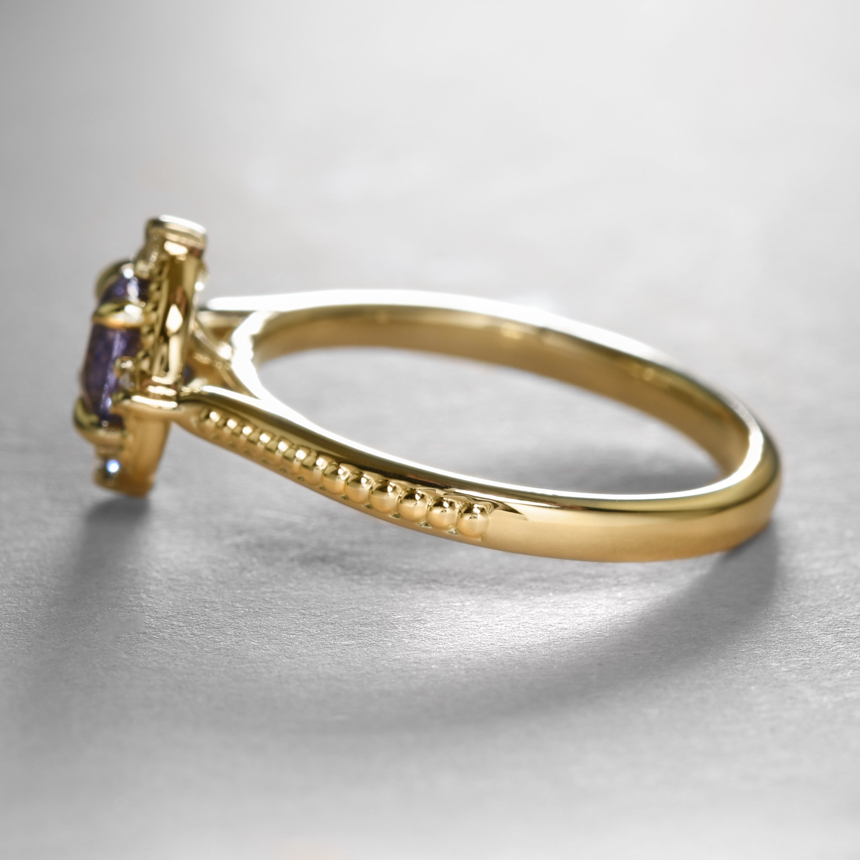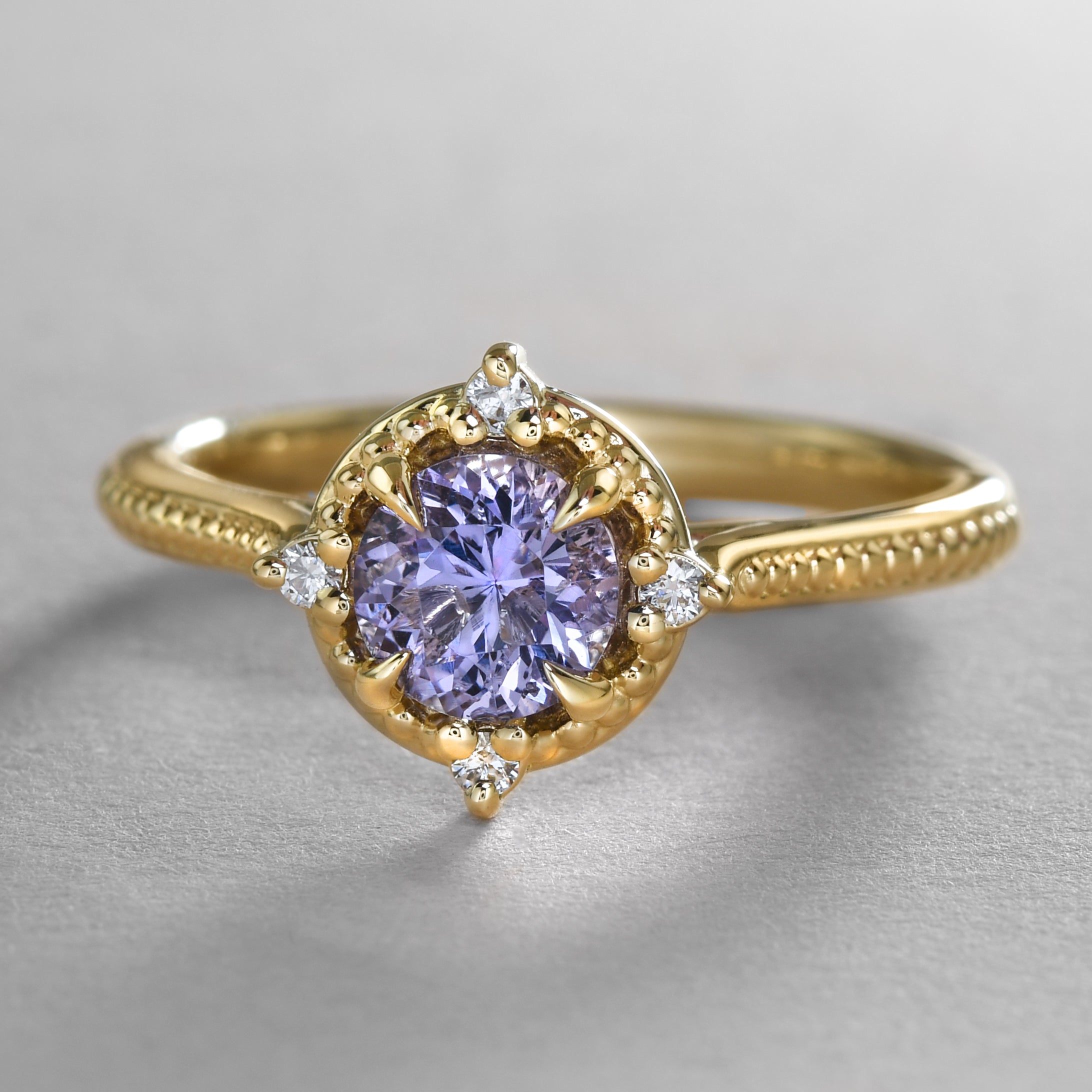 There's just something about tanzanite. Its violet blue color? Its glorious sparkle? It draws you in until you are mesmerized by its beauty. This tanzanite ring is brimming with antique...