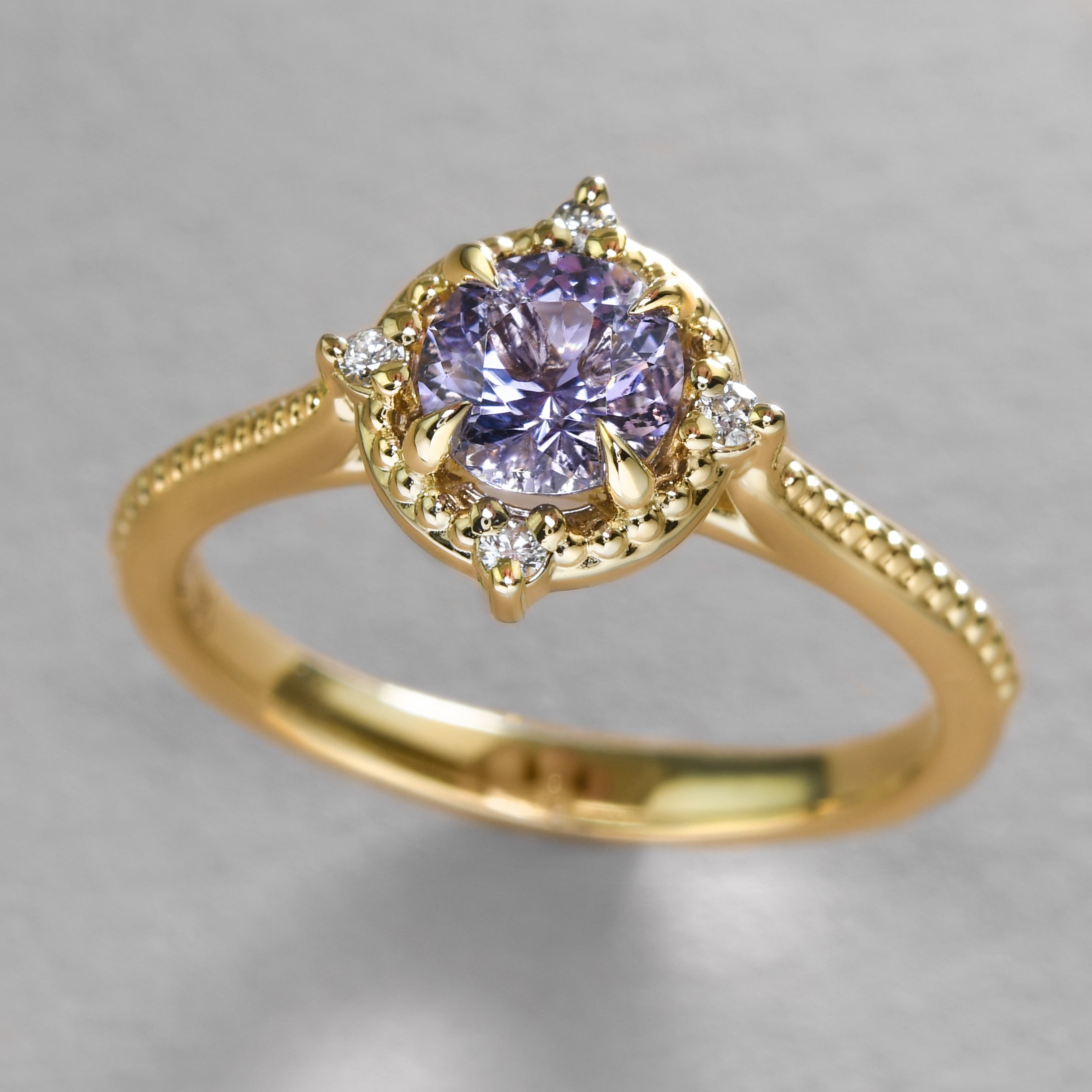 One of Marcel's creations, with a very unusual violet spinel gemstone. Marcel couldn't part with this special spinel, after he spied it in our gemstone dealer's box of treasures. The...