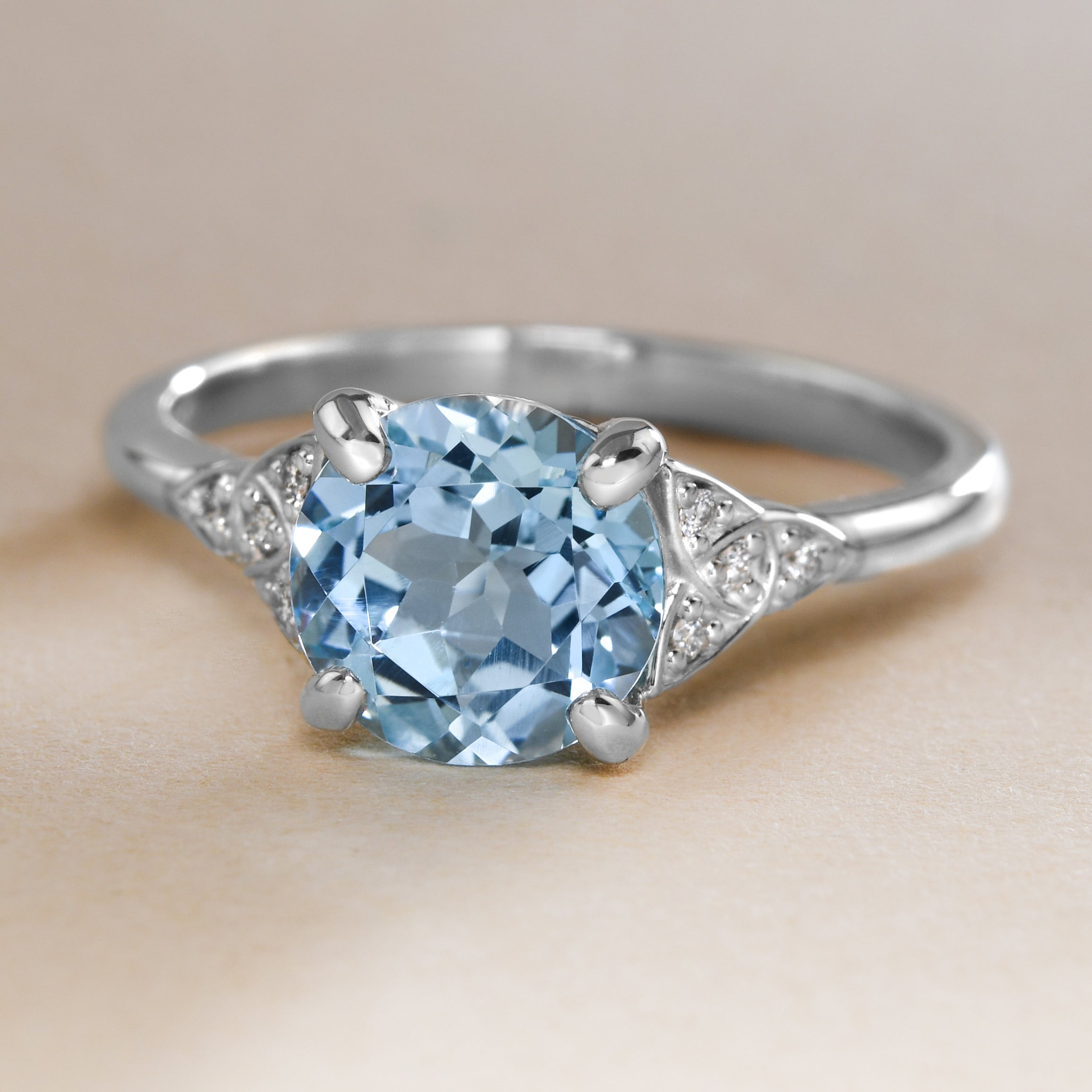 Fall under the spell of our alluring aquamarine and diamond ring. Fashioned in 14 karat white gold, the ring is brimming with vintage-inspired details, like a double-milgrain bezel, bead-style prongs...