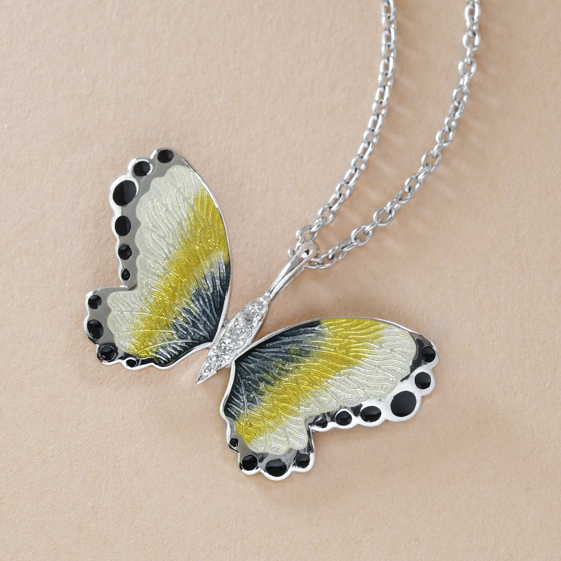 An unusual color combination of white, black and gold decorates the wings of this fantastic butterfly pendant. The pendant is French enamel, which is powdered glass that is fused over...