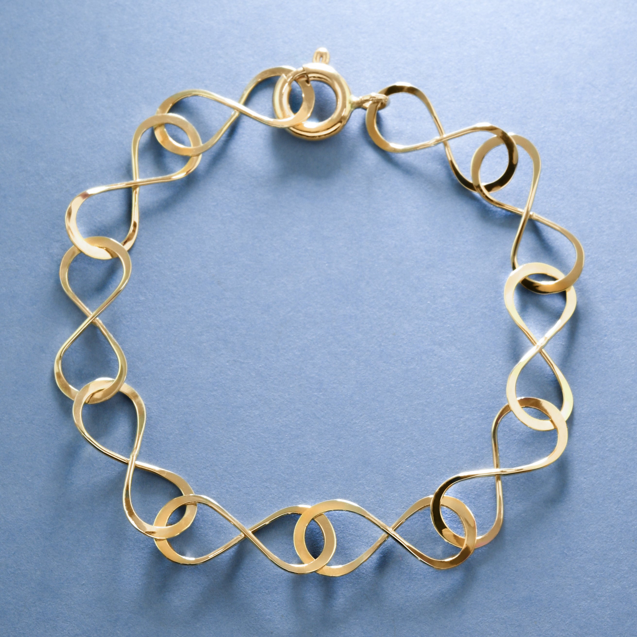 Entwined infinity-motif links come together in this bracelet by Massachusetts designer Tom Kruskal. Tom forges each of his signature jewels by hand, using a hammer and anvil to tame precious...