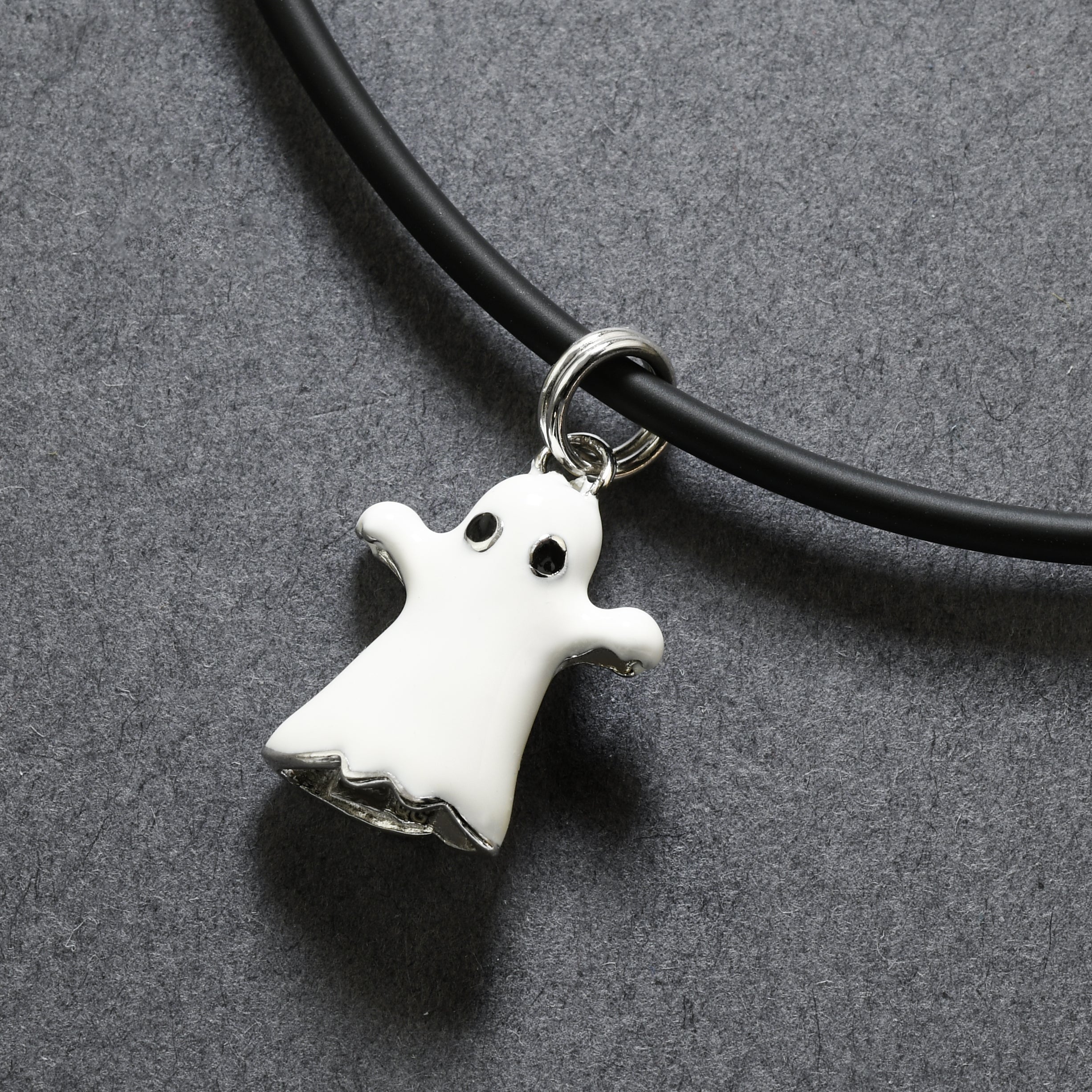 Our adorable ghost charm is ready to fright and delight! Crafted in sterling silver, the ghost is dressed in opaque white enamel with black enamel eyes. The ghost measures 7/8...